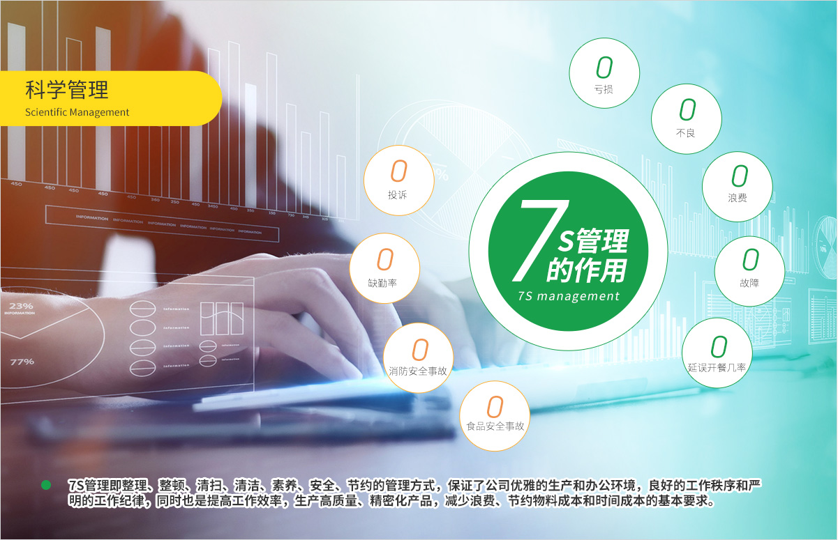 7S管理是食堂現場各項管理的基礎管理,它有助于消除食堂在運營過程中可能面臨的各類不良現象。7s管理在推行過程中,通過開展整理、整頓、清掃等基本活動,使之成為制度性的清潔,最終提高員工的職業素養。因此,7S管理對食堂的作用是基礎性的,也是不可估量的。7S管理是環境與行為建設的管理文化,它能有效解決食堂、廚房凌亂、無序的狀態,有效提升個人行動能力與素質,有效提升文件、資料、檔案的管理,有效提升工作效率和團隊業績,使工序簡潔化、人性化、標準化。7S的具體含義和實施重點如下: